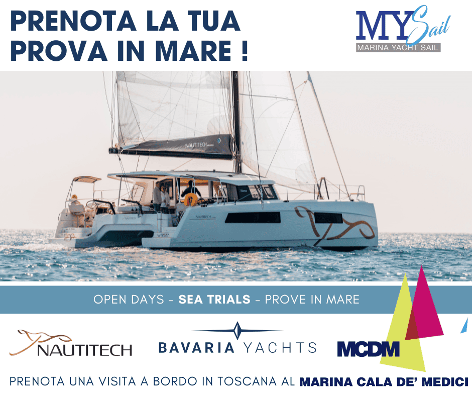 Siamo lieti di invitarvi al nostro esclusivo Open Day dedicato ai prestigiosi marchi Nautitech Catamarans e Bavaria Yachts Un’occasione imperdibile per salire a bordo, incontrare i nostri esperti e soprattutto provare in mare le imbarcazioni più rappresentative delle due flotte: NAUTITECH 44 OPEN e BAVARIA C38, C42 , C46 HARD TOP . Ti aspettiamo a bordo !! Per partecipare all evento REGISTRATI QUI